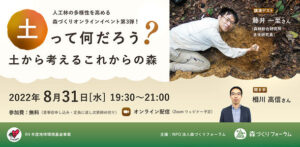 特定非営利活動法人 森づくりフォーラム『土って何だろう? ~土から考えるこれからの森~』を 8月31日オンラインで開催 土壌研究者 藤井 一至さん講演