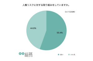 株式会社月刊総務ほぼ全ての企業が自社に人権リスクありと認識するも、取り組みをしている企業は6割にとどまる。リスクの対象は約8割が「ハラスメント」