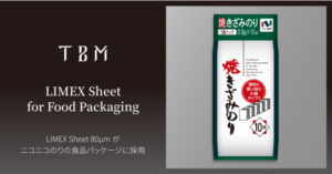TBM石灰石を主原料とする「LIMEX Sheet 80μm」が、ニコニコのりの食品パッケージに採用