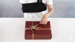 結い人ラッピングもバリアフリーに。ギフトラッピングの結い人、ケアxデザインのアドバイザーnenlinのサポートを受け、机に置いたまま片手で簡単にあけられるギフトラッピング「easy-openシリーズ」を開発