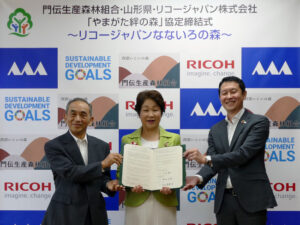 リコージャパンリコージャパン山形支社、山形県、門伝生産森林組合とやまがた絆の森協働活動事業に関する協定を締結