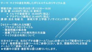 【ライブ配信セミナー】マイクロ波を利用したポリエステルのリサイクル法 8月29日(月)開催 主催:(株)シーエムシー・リサーチ