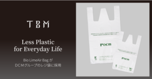 TBM石灰石と植物由来樹脂を使用した「Bio LimeAir Bag」が、DCMグループのレジ袋に採用