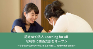 認定NPO法人 Learning for All認定NPO法人 Learning for All 尼崎市に関西支部をオープン