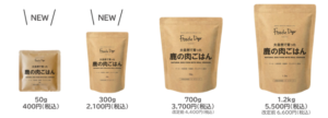 株式会社ロスターベル鹿の生肉を贅沢に使用した『大自然育った鹿の肉ごはん』8月1日より新たなサイズバリエーション50gと300gが登場!~同時に『大自然で育った鹿の肉ごはん』700gと1.2kgを価格改定、お値下げ~