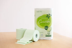 丸富製紙株式会社3枚重ねの安心感とプラスチックフリーの紙パッケージで、「暮らしにも、私にも心地よい」トイレットペーパー。『ハナタバCocochi』 新発売!