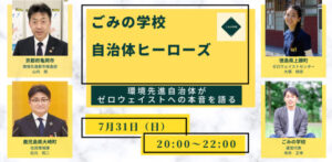 ゼロ・ウェイスト・パートナー【ごみの学校~自治体ヒーローズ~】環境先進自治体がホンネで語る「サステナブルなまちづくり」とは。環境先進都市の担当者を集めたトークセッションを7月31日(日)に開催!