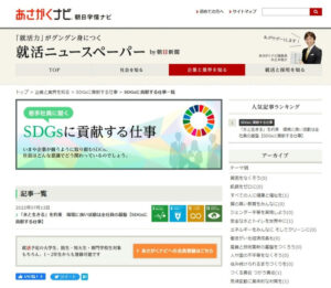 株式会社学情「あさがくナビ」で、「〈若手社員に聞く〉SDGsに貢献する仕事」を連載開始