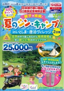 株式会社 日本旅行赤い風船50周年特別企画 楽しみながらSDGsを学ぶ「親子で挑戦!夏のシン・キャンプ Inいとしま・唐泊ヴィレッジ1泊2日」発売!