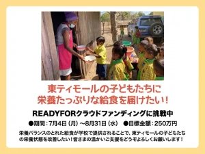 特定非営利活動法人パルシック5歳未満の子どもの半分が発育阻害の東ティモールで、ふりかけを使った学校給食を通して子どもたちの栄養改善を目指すクラウドファンディングに挑戦します!