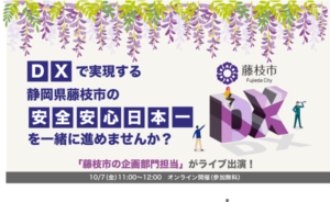 株式会社地方創生テクノロジーラボ【地域課題解決の取り組みを検討している方必見】自治体職員と“その場で質問・意見交換ができる”職員LIVEを開催します。2022年10月度は「静岡県藤枝市」が登壇!