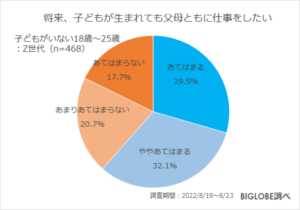 ビッグローブ株式会社「男性も育休を取得すべき」Z世代の8割弱 BIGLOBEがZ世代の仕事と育児に関する意識調査を実施 ~10月1日から産後パパ育休(出生時育児休業)が施行 「男性の育休に対し、職場の理解が不安」も8割弱~