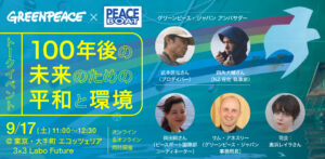 国際環境NGOグリーンピース・ジャパン【トークイベント】9月17日(土)ハイブリット開催「100年後の未来のための平和と環境」 グリーンピース・ジャパン×ピースボート×武本匡弘さん×四角大輔さん 〜気候危機、紛争、人の暮らしと地球の未来が脅かされる今考える平和と環境〜