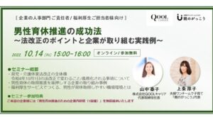 株式会社QOOLキャリア「男性育休推進の成功法 〜法改正のポイントと企業が取り組む実践例〜」無料オンラインセミナーを10/14に開催【参加企業様には企業内研修を無償提供!】