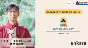 合同会社enkara【プロギングドッグ協会主催】オンラインクラス第2回「シニア犬との暮らし(ウェビナー)」開催のお知らせ〜 2022年10月19日(水) 20:00ー20:45〜