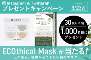 サムライワークス株式会社【地球に還るマスク】人にやさしく、地球にやさしいマスク。ECOthical Mask(エコシカルマスク)が1,000名様に当たる!Instagram&Twitterプレゼントキャンペーンを開始