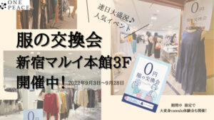 株式会社ワンピース#服の交換会。新宿マルイで開催中。身近なところから「サスティナブルな暮らし」を楽しもう。服をシェアする新しい社会。2022年9月28日まで!
