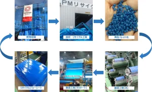 ライフデザイン・カバヤの建築現場用ブルーシートの水平リサイクルの取り組みにおいて、再生材使用率の向上を目指します